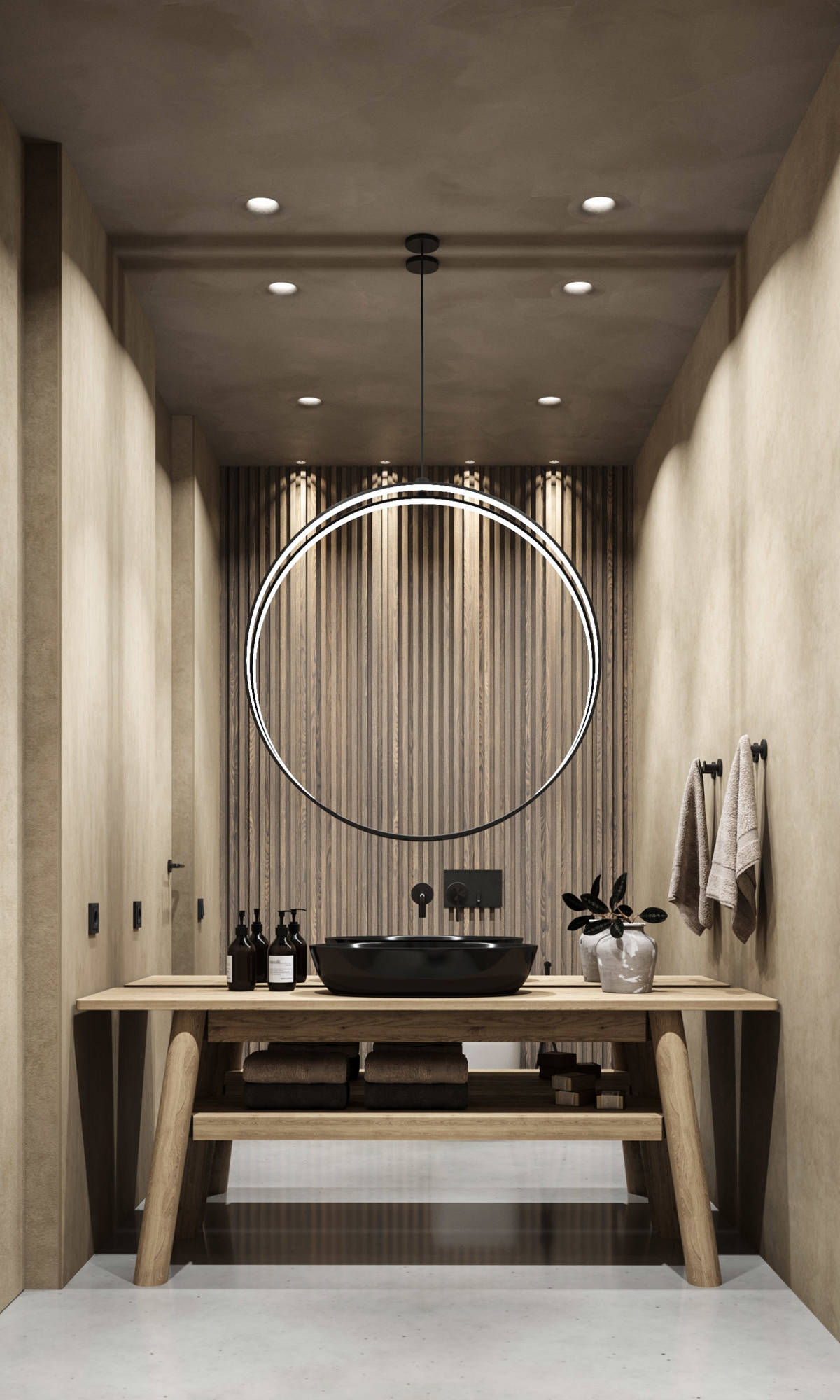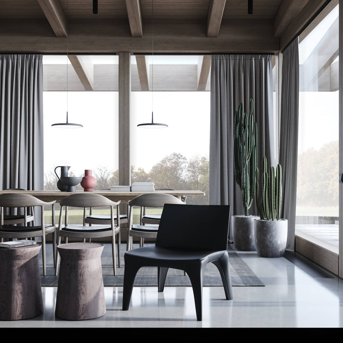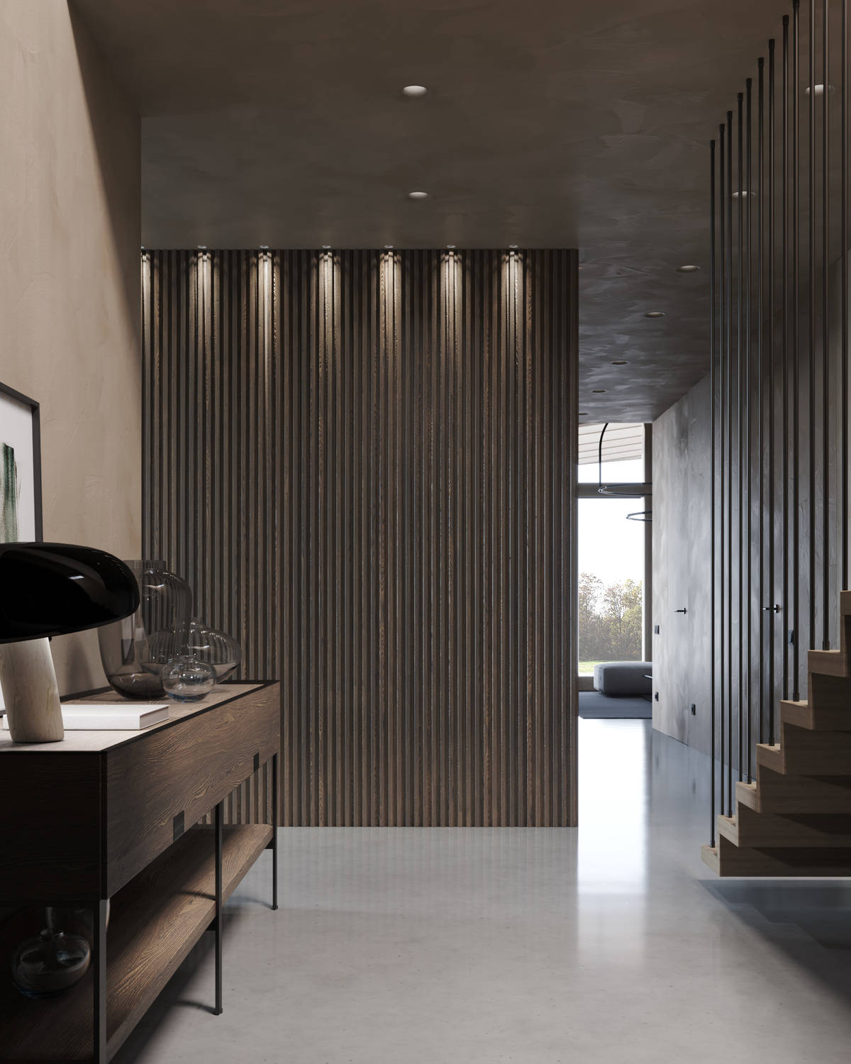 The process of creation a project from scratch, starting from architectures and ending with interior design, is extremely valuable for us. This is the case with the house located on the bank of Kan river. This project was created in combination of modern and state-of-the-art style and traditional fachwerk trend. As a result the stylish and minimalist-style house was created. Wood, textured plaster, super comfy-to-the touch tiles creates sensual, warm, minimalistic interior.